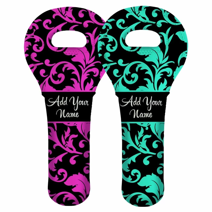 These custom printed wine totes also make for an awesomely unique gift idea! Buy several at a discounted price and slip a wine bottle into them to hand out for the holidays to your favorite wine enthusiasts… they will love it! These wine totes are well built from a high quality (semi-stretchy) neoprene material that will keep your wine bottles snug and cold for extended amounts of time. The designs showcase a full color, vibrant imprint on both sides of the tote. Adding your name is not required, but is a great way to customize this product and make it your own!