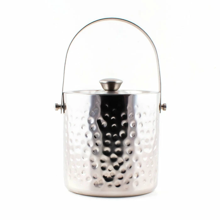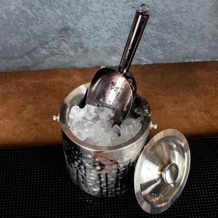 For those home bar enthusiasts and traveling mixologists who love to dress their bar in the latest trends and styles, this Ice Bucket is a fantastic choice. The distressed hammered effect gives this bucket a desirable look, one that will look amazing sitting on your bar top. It is made of thick and durable stainless steel and measures 7″ in height with a diameter of 6″. Has a liquid capacity of 1.8 quarts.