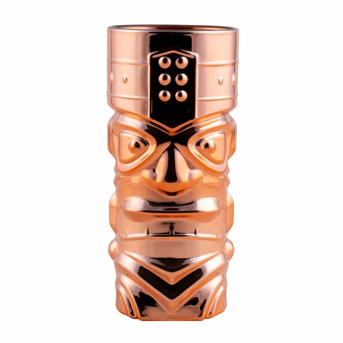 This 15oz cocktail glass is made with a thick, high-quality glass material making it perfect for tropical mixed drinks with a professional yet playful presentation. The heavy glass is true quality that sets it apart from most tropical glassware, and the 15oz size is perfect for holding fruity, island style drinks. The intricate design of a tiki face offers smooth lines and promotes a very professional, elegant piece of glassware. Each glass is metal plated to give your glass a truly unique look. Comes in 3 various colors. Gold, Silver and Copper.