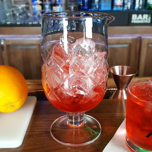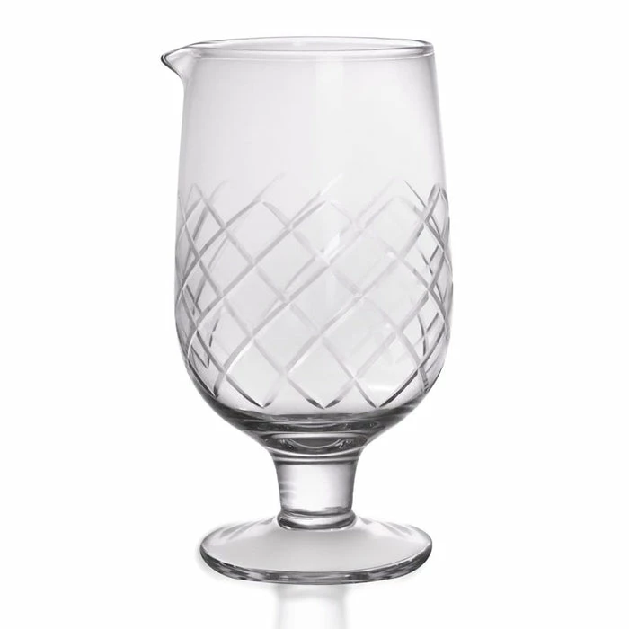 This BarConic® 30oz. Diamond Pattern Mixing Glass is a great way to add some extra style and sophistication to any collection of bar tools. The design of this cocktail mixing glass makes it an instant center piece of any barware set and the focal point of any room. Featuring the classic diamond cut weave pattern, this stylish mixing glass is perfect for crafting premium quality cocktails behind the bar, or in your own kitchen. The 30oz. capacity of this cocktail mixing glass offers just the right amount of room to effectively mix your drink ingredients. Known for enhancing overall efficiency and speed, this glass has also been designed for stability. The wide and solid base provides a secure support for the stemmed feature. This unique mixing glass gives you the necessary conditions you need to start crafting amazing drinks. Anyone looking to create a great tasting cocktail must have a dependable cocktail mixing glass, with this consistently productive product you are guaranteed just that. The reliability of this one of a kind barware tool makes it an immediate asset, no matter the environment. Our BarConic® 30oz. Diamond Pattern Mixing Glass is a great addition to any home or establishment looking for the perfect blend of style and functionality.