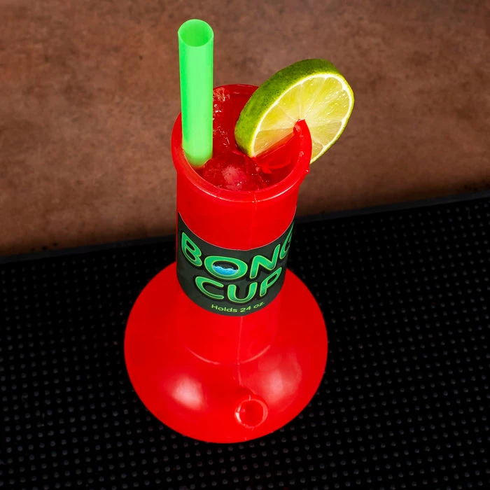Throw out that nasty bong water and trade it for a nice tasty cocktail. This plastic bong cup is for sure a conversation starter when you break it out at your next party. It is made of solid durable plastic and measures 9″ in height with a rim diameter of 1.75″.ย This cup as a max liquid capacity of 24 ounces.ย