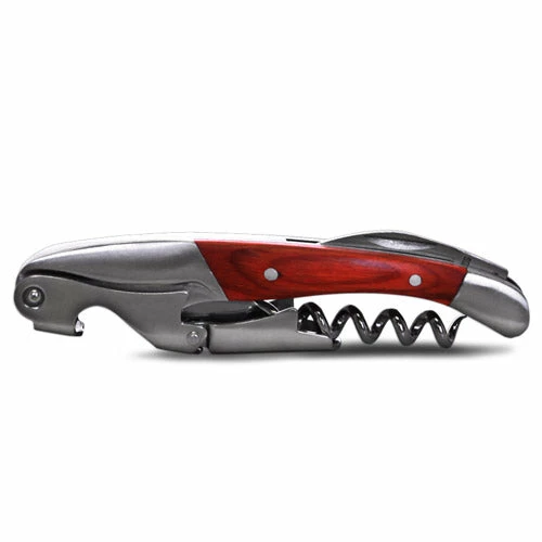 Made with a striking dark wood inlayed handle, this elegant and compact double-lever corkscrew is constructed from a sturdy stainless steel. With a foil cutter addition, you can make this your top choice wine bottle opener.
