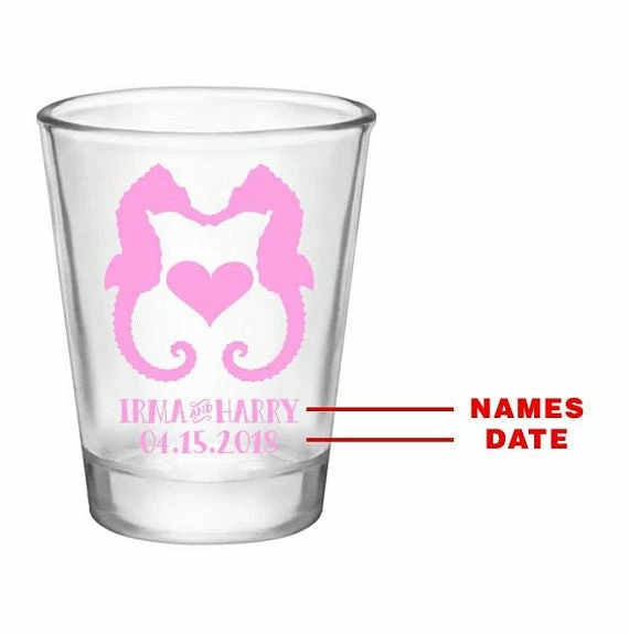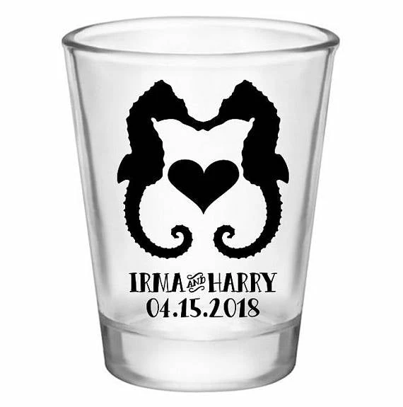New 🎉 BarMan CUSTOMIZABLE – 1.75oz Clear Wedding Shot Glass – Seahorse Love 👏