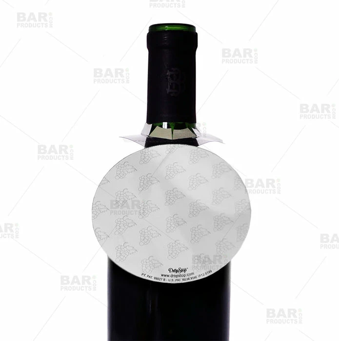 This Drop Stop Wine Pourer comes complete with a neck hanger for displaying the wine pourer on the bottle itself. The pourer is easily removed from the neck hanger; simply tear it away along the perforated edge. This flexible wine pourer is easy to use and fits any wine bottle neck size. By rolling the flat circular piece inward you create a cylinder that fits into the bottle neck for a drip-less pour and no more of those pesky red wine stains!