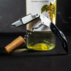 This gorgeous spill-proof bottle makes pouring and storing effortless. Made from a high quality Borosilicate glass, this wine decanter type bottle can be used for all types of beverage service. Featuring a chalkboard strip, you can conveniently labelย theย contents of the bottle. This cork stopper decanter also comes with a wood crate gift box for an added touch of style.ย