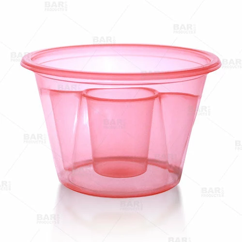 These plastic Bomb SHOTZ® are the smart way to serve up specialty shots- the bright neon colors display well when serving and are easily disposable. The inner shot chamber holds a 7/8oz pour and the two outer chambers combined hold 2 1/4oz of liquor or mixers. They have ridged sides for easy handling. Sold in packs of 50 with four color options available.