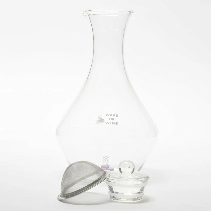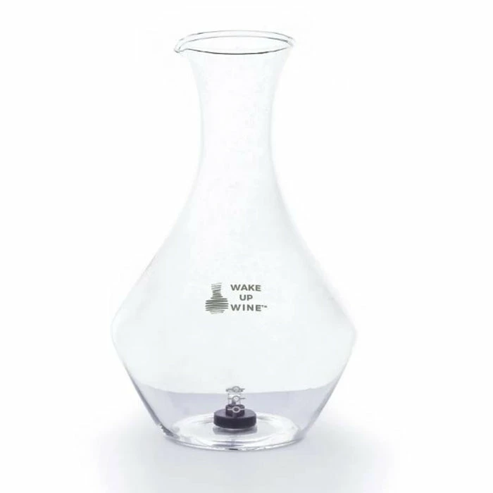 750 ml Premium, Lead-Free Glass Decanter with Airtight Glass Stopper for the WAKE UP WINE and WAKE UP WINE PRO electronic decanters. Impress your guests with its sleek design. Itโs dishwasher safe and made of recycled glass. Itโs a great conversation piece making it a beautiful addition to any kitchen, bar or table. Regulate your pour using the measuring marks at 4, 6, and 8 oz.
