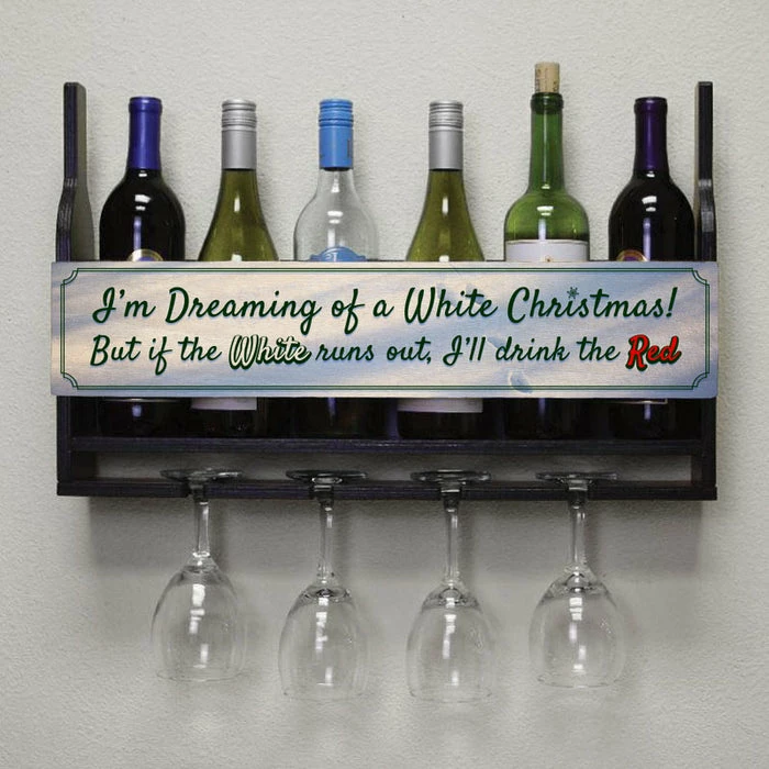 Discount ๐Ÿคฉ BarMan Wall Mounted Wine Bottle & Glass Hanging Shelf W/ White ๐ŸŽ… Christmas Plaque ๐Ÿ‘