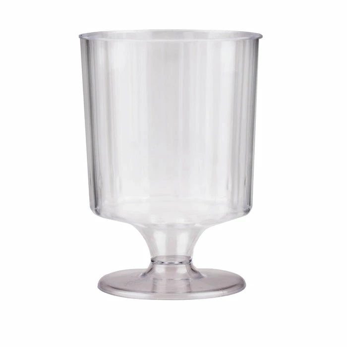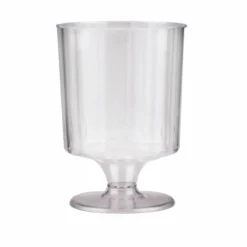 These wine stem glasses are elegantly fluted to mimic the appearance of crystal glass. Made of durable plastic, These cups offer all the beauty of crystal without the delicate breakability. They provide an impressive, upscale appearance to any type of party or gathering. These cups are disposable providing easy clean up. They stand 3.75″ tall and have a rim diameter of 2.25″. Each cup has a liquid capacity of 5 ounces. This product comes in a pack of 10 cups.
