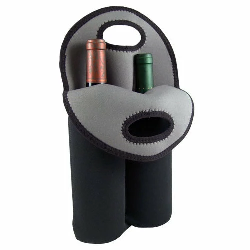 Like a jumbo “Cooler” big enough for one standard size bottle of the finest wine. Durable, stretchy 100% neoprene works like an insulating wetsuit, keeping wine cooler longer and preventing condensation from gathering. Also keeps bottles from clinking together. This wine tote has convenient built-in handles for easy-carrying.